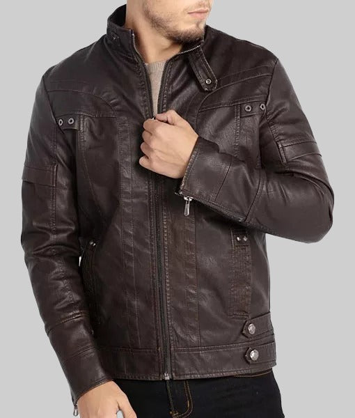 Barto Men’s Brown Real Leather Café Racer Jacket