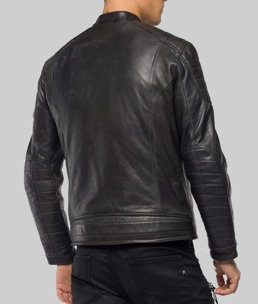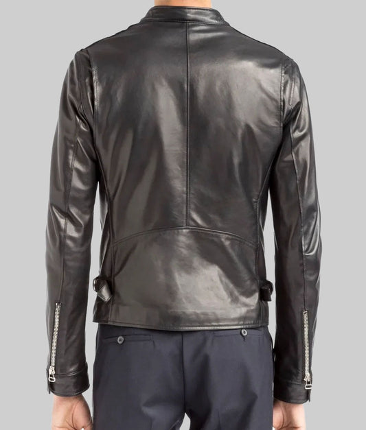 Burrito Men’s Black Real Leather Café Racer Jacket